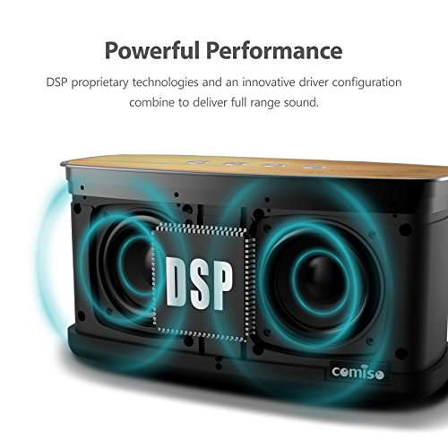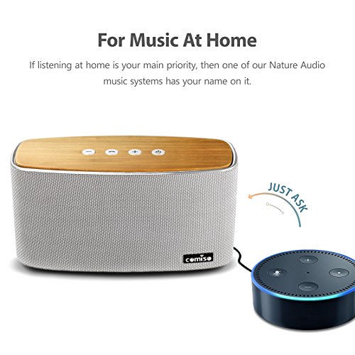 COMISO 30W Bluetooth Speakers with Super Bass, Bamboo Wood Home Speaker with Subwoofer - (Grey)