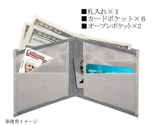 メタリックなカラーとクールで近代的なデザインが目を引く2つ折り財布。素材にはステンレススチールを糸にして織った生地を採用。強くて丈夫、塩や汗・酸・海水など腐食させるものに対しても優れた耐久性を発揮します。裏地には耐久性のあるバリスティックナイロンを使用。コンパクトでいつまでも飽きずに長く使える2つ折り財布です。 |
