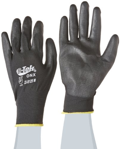 G-Tek 33-B125/M ONX Seamless Knit Nylon Gloves with Polyurethane Coated Palm and Fingers, Black, Medium, 1-Dozen