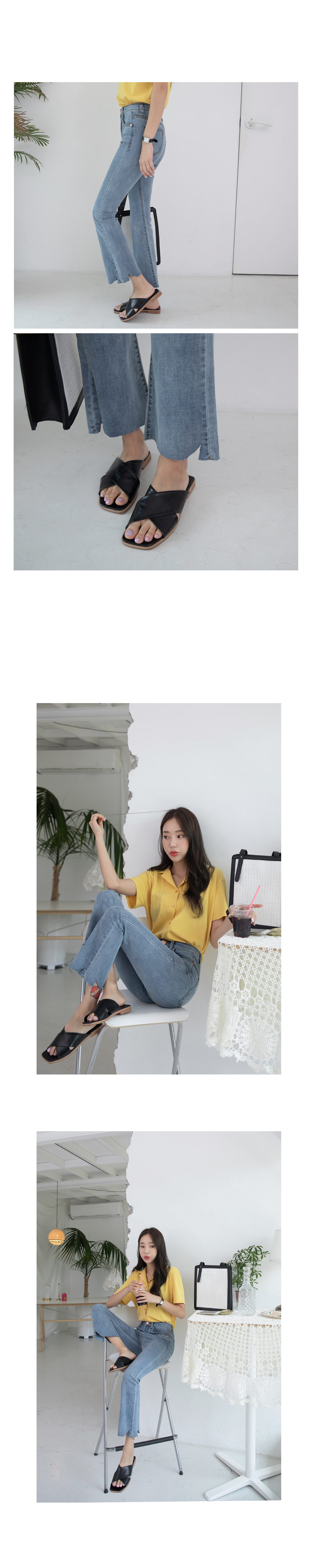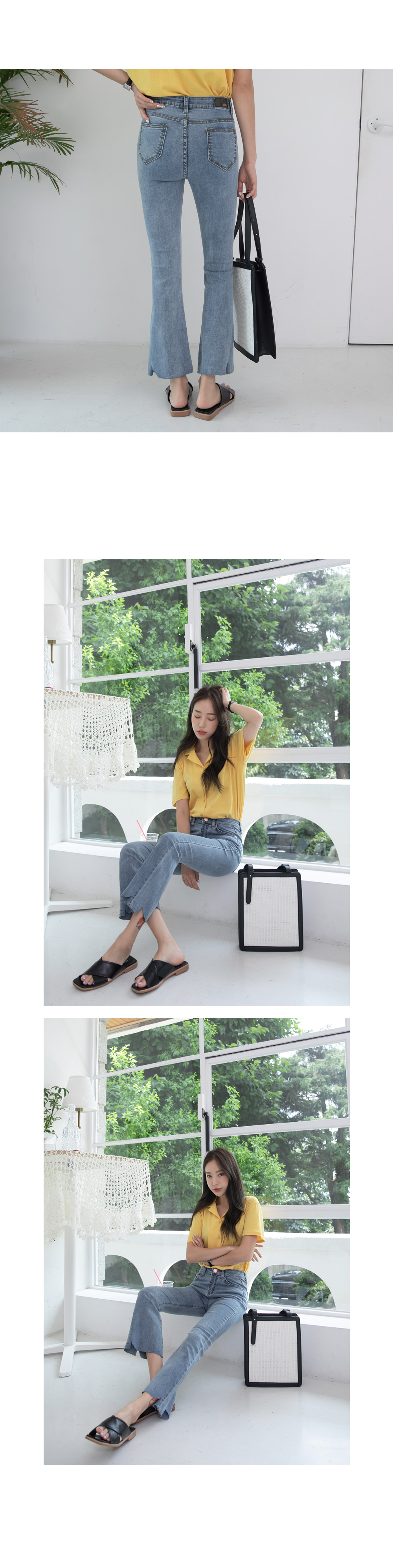 무릎에서부터 밑단이 퍼지는 세미 부츠컷 핏으로