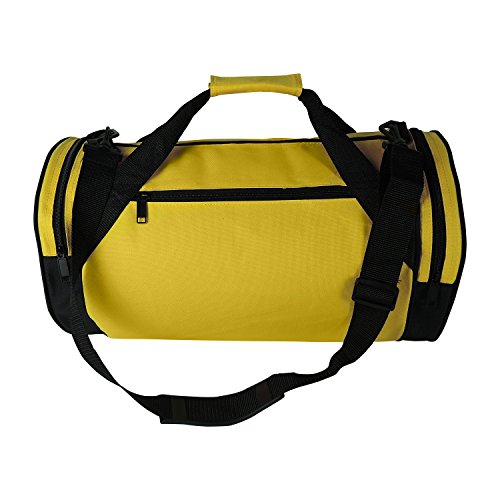 -. Feature : FEATURES: Zippered main compartment, two zippered side pockets, poly-web handle & shoulder strap / SIZE: 18" X 10" X 10" / MATERIAL: 600D Polyester / COLORS: Black, Royal/Black, Red/Black, Navy/Black, Dark Green/Black / INTENDED USE: Gym, Travel, Overnight, Flight bag, Airplane Carry-on