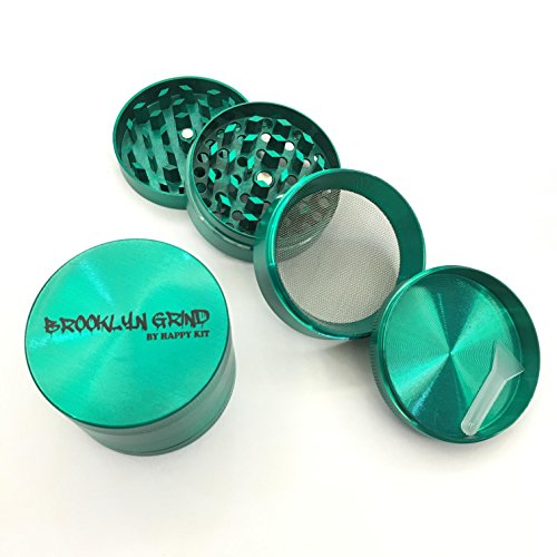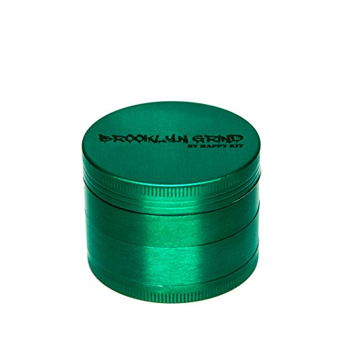 Brooklyn Grind 4 Piece 2" Spice Herb Grinder with Pollen Catcher - Aluminum + Includes smell-proof cigarette holder. (Green)