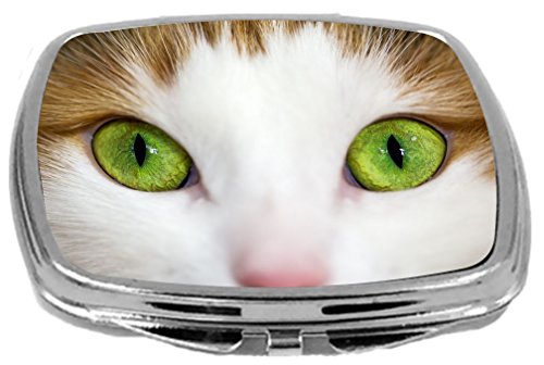 Rikki Knight Close up of Lime Green Eyed Cat Design Compact Mirror, 17 Ounce