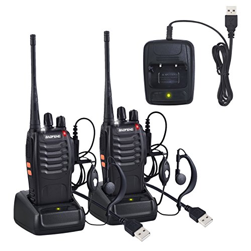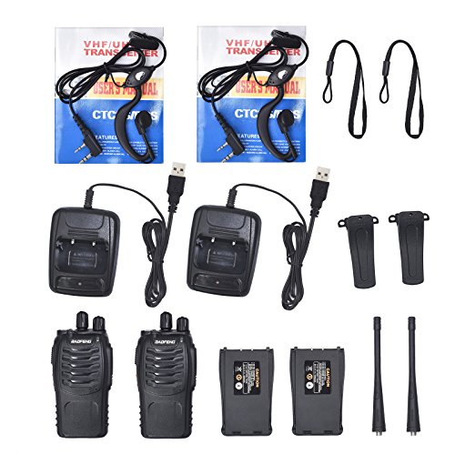 【UHF 400-470MHz, 16 Channels Walkie Talkies】Portable Size, Weighs 180g,Easily Carrying,Connect Each Other in Remote Area or Wild Field about 2 Miles (Depends on Your Surroundings, Max in Wide Open Field), Ready to Communicate with Your Mate As Long As Set to a Same Channel(Note: The Charger is USB Cable Version)