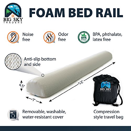 Does your child need a transitional bed bumper/rail that doesn’t cage them in but is still safe, versatile, easy to clean and can be used anywhere they go to sleep? Are bed changes a nightmare because of your traditional bed rail? ? The Big Sky Traders (Single) foam safety guard rail bumper makes the toddler to big boy/big girl bed transition much easier! Our soft foam safety guard rail bumper won’t cage your child in. It will gently help to keep them safer in their new bed. Just place the bumper on top of the mattress pad and under a deep fitted sheet. Anti-slip material on the side helps to keep the bumper from falling off the side of the bed. The anti-slip material on the bottom keeps the bumper from moving around on the bed.? Your child’s bedding won’t be pinned down with our bumper. Bedding will neatly lie over the bumper and on the bed, easily pulled up and down. Changing the bedding can be done safely, as usual. No dancing over a rail on the floor. The water-resistant, anti-slip cover can easily be cleaned too- just remove, wash in a gentle cycle and air dry. The Big Sky Traders (Single) foam safety guard rail bumper can be taken anywhere. With our compression style travel bag our bumper travels easy. ? Sleep soundly with our 30-day money back guarantee and limited lifetime warranty. If our Single Toddler and Child Crib to Bed Foam Safety Guard Rail Bumper doesn’t make your child’s transition to a bed easier in 30 days we will refund your money, no hassles. It’s that easy. Defective or malfunctioning parts are covered under our limited lifetime warranty. ? Add one to your cart and get ready for your toddler’s easy transition. 0 |