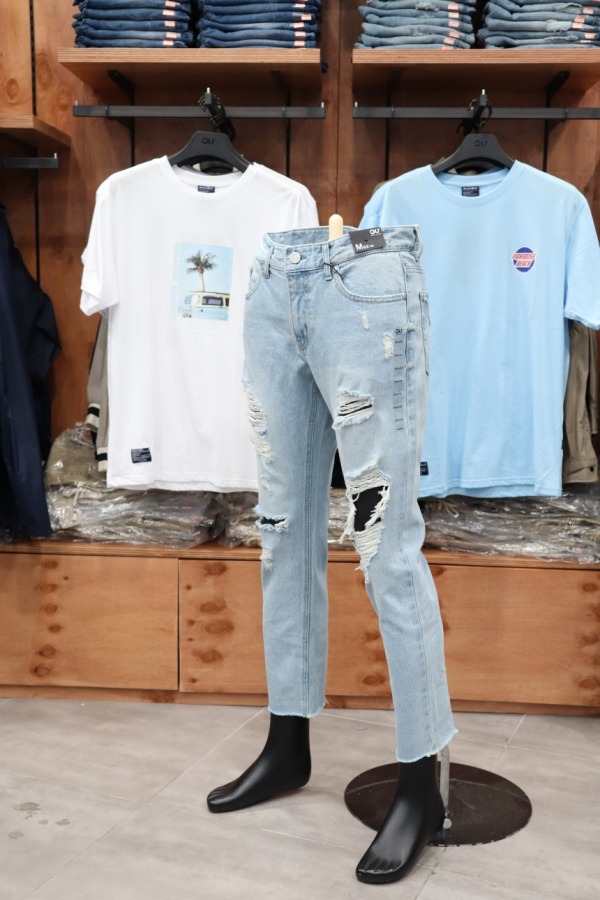 겟유즈드 라이트 톤의 여름구제 아이템입니다. 시원하게 탈색한 데님 컬러와 과감한 오픈구제들로 한여름에 시원하게 입을수 있는 스타일리시한 아이템입니다.