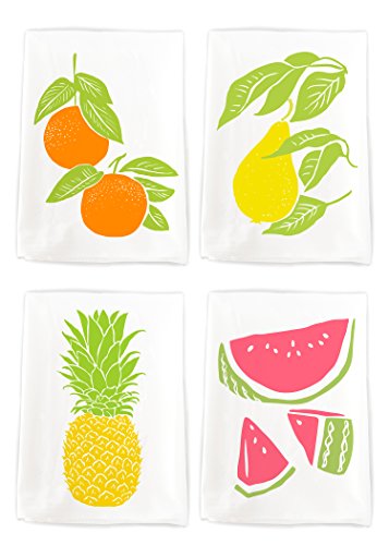 Rigel Stuhmiller Farmer's Market Themed 4-Pack Assortment "Summer Fruit Salad" Screenprinted 100% Cotton Flour Sack Dish Towels
