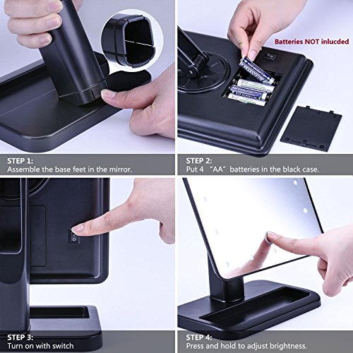 - Please notice that (batteries NOT included). This LED mirror light is used by with 4 brand new AA batteries, up to 10% more energy efficient.