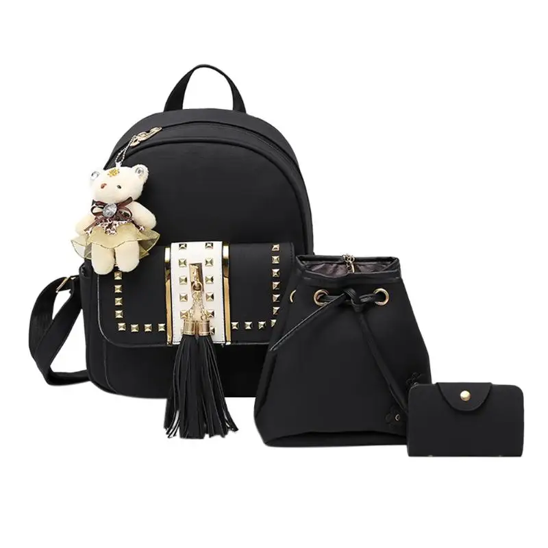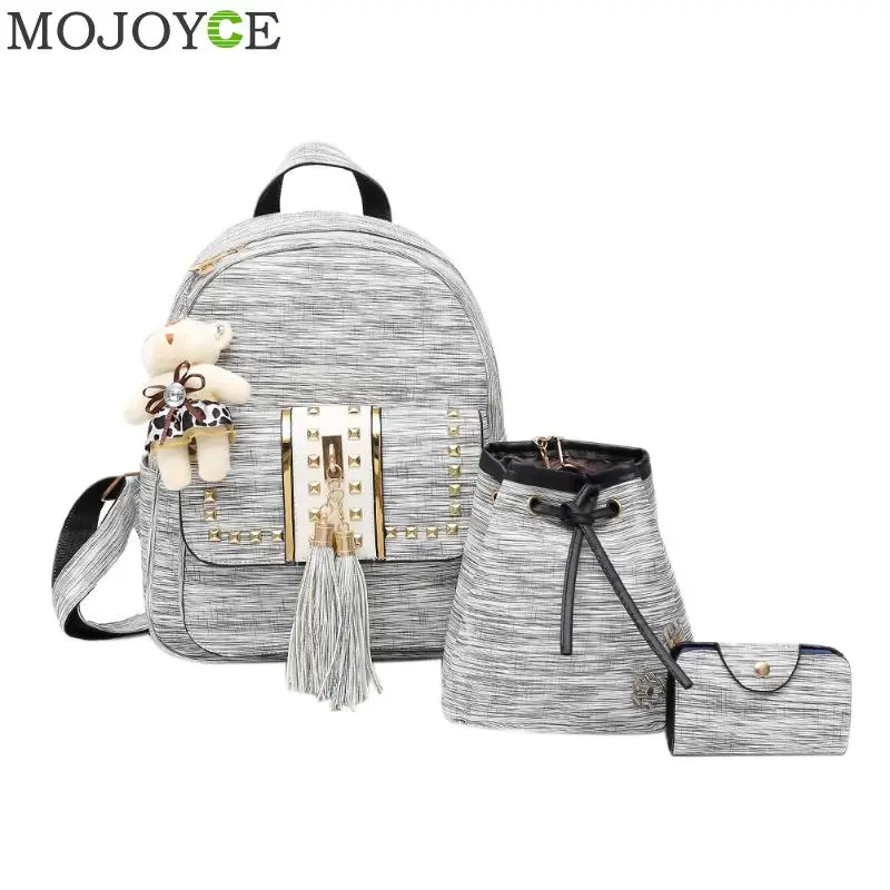 3pcs Simple Tassel Women Handbag PU Leather Backpack Girl Shoulder Bag 3pcs Fashion Women Big Tote Handbags PU Girls School Backpack Shoulder Bag Features: The fashion version of the type: simple, high-grade PU material, extraordinary quality; Exquisite design: generous, simple fashion; Easy to carry: Breakthrough cumbersome, handy convenient. Specifications: Name: 3pcs Bag Material: PU Lining: Polyester (random color inside) Size: Backpack: 310 X 240 X 100 mm/12.2 X 9.45 X 3.94 in; Shoulder bag: 170 X 160 X 100 mm/6.69 X 6.3 X 3.94 in; Card bag: 110 X 70 X 10 mm/4.33 X 2.76 X 0.39 in Uses: Backpack, Shoulder bag, card bag Net weight: Approx. 600g Style: As shown Material Technology: Soft surface Color: Grey, Black, Pink Note: Adjustable shoulder strap Note: 1.Please allow 1-3 cm differs due to manual measurement. 2.Due to the different display and different light, the picture may not show the actual color of the item. Thanks for your understanding. 1 X Backpack 1 X Shoulder Bag 1 X Card Bag |