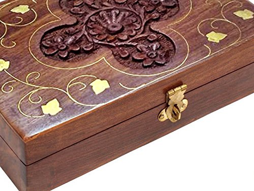 Special valentine day gift, Wooden jewelry box Flower Inlay with Carving, Brown Color Jewelry Box, Keepsake Box, Storage Box, Jewelry Organizer Box for Girls & Women - 8X5 inch