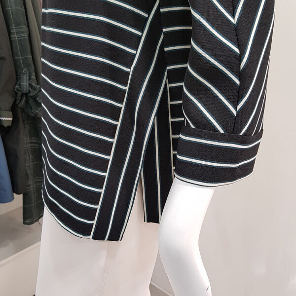 옆선 트임에 포인트를 주어 세련되고 케주얼하며 박시하게 떨어지는 핏감으로 편안하게 연출 되는 디자인 입니다.착용시 가볍고 발랄 해 보이는 스타일 입니다.