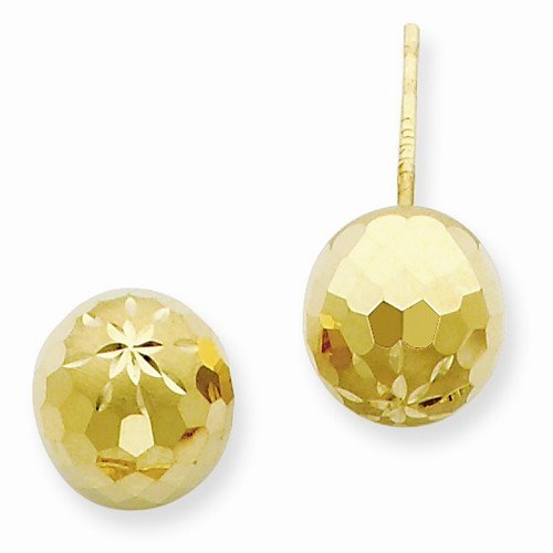 14k Yellow Gold 9mm Diamond Cut Mirror Ball Post Earrings (9mm x 9mm)