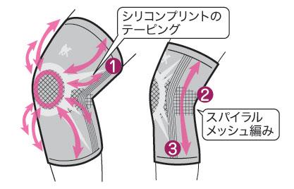 シリコンプリントのテーピングをサポーターにプリントすることにより、サポーターの伸縮する加圧にテーピング効果を備えたサポーターです。