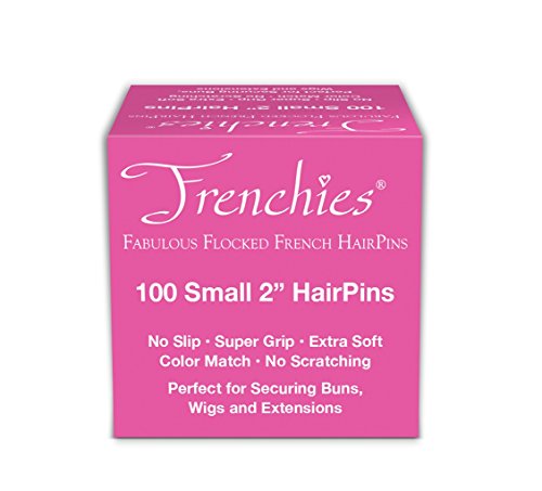 Studio : Frenchies Publisher : Frenchies Binding : Misc. Product Description Frenchies Ultra Flocked French Hairs Pins are FABULOUS! What's the secret? It's all in the innovative coating! Frenchies are made from a traditional U shaped French hairpin and flocked with microfiber coating, creating a high friction soft surface to hold the hair in place for extended periods of time. What's that now? Basically, Frenchies clings to your hair to ACTUALLY HOLD IT, and for like FOREVER....no more sneaking off to the bathroom to touch up, or massive amounts of hair spray, yay save the atmosphere! Soft to the touch coating, Frenchies hair pins have rounded edges - that's right ladies NO MORE SCRATCHED SCALPS! And did we mention, they literally BLEND IN with your natural hair color - you can't see them meaning flawless updo perfection! Frenchies even works great for sleek or baby fine hair - they simply DON'T SLIP. Unlike Bobby pins or other U shaped pins, Frenchies were made durable and to cling to your hair so they don't fall out, hello top knot, French twist, ballet bun.....maybe even Jessica Simpson Extensions or Nicki Minaj Wig, YES PLEASE! Frenchies really are the perfect hair accessory for weddings, dancers, or a fancy party - even celebrities like Eva Longoria, Emily Blunt, and Selena Gomez get RED CARPET READY with them. Available in 4 natural hair colors: Black, Brown, Blond, and now RED! Each standard box comes with 10 small (2in long) and 10 large (3in long) pins, or opt for the new PRO PACK that come with 100 small (2in) or 100 large (3in) pins, to give you that perfect, polished look, day or night, every time! 0