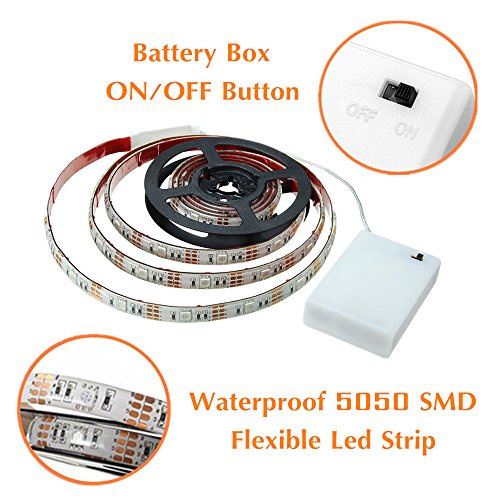 ★FLEXIBLE AND SAFE TO USE: 5050 RGB Waterproof flexible LED strip with battery box, portable,Flexible Led strips bend to your desired positions,Self-adhesive back with Adhesive tape for secure and easy application. no harm to human eyes. low power consumption, stable performance Led strip. touchable and safe to children.More energy efficient,safer,more convenient.