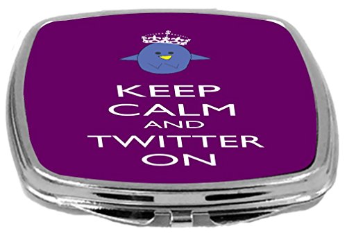 Rikki Knight Compact Mirror, Keep Calm and Twitter On Purple