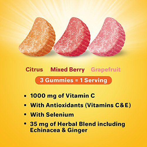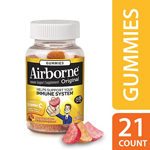Airborne Immune Support Gummies provide immune support in a delicious, and easy-to-take gummy form. Each serving (3 gummies) delivers a blast of 1000 mg of Vitamin C and 9 other vitamins, minerals, and herbs, including Echinacea and ginger.* Adults and Children 14 years and older, chew 3 gummies thoroughly before swallowing. Repeat as necessary up to 3X per day, no more than 9 gummies per day. Children 12 to 13 years of age, take 3 gummies. Chew thoroughly before swallowing. Repeat as necessary up to 2X per day, no more than 6 gummies per day. *These Statements have not been evaluated by the Food and Drug Administration. This product is not intended to diagnose, treat, cure or prevent any disease.Feature