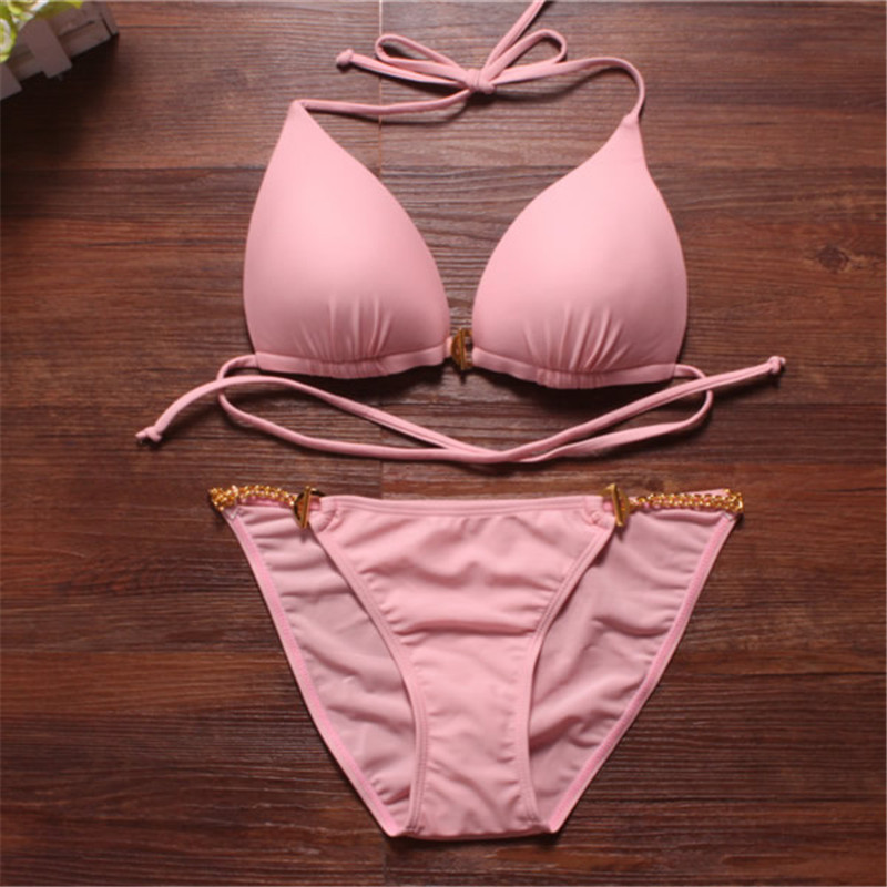 Solid cup bikini Sexy Women Bikini Set Bandage Push-Up Padded Swimwear Bathing Beachwear