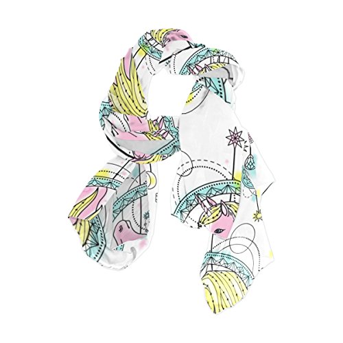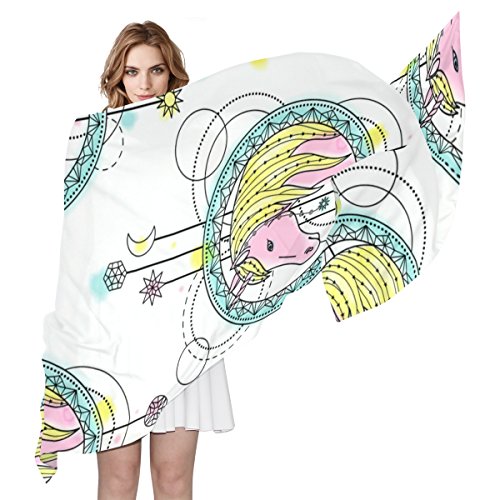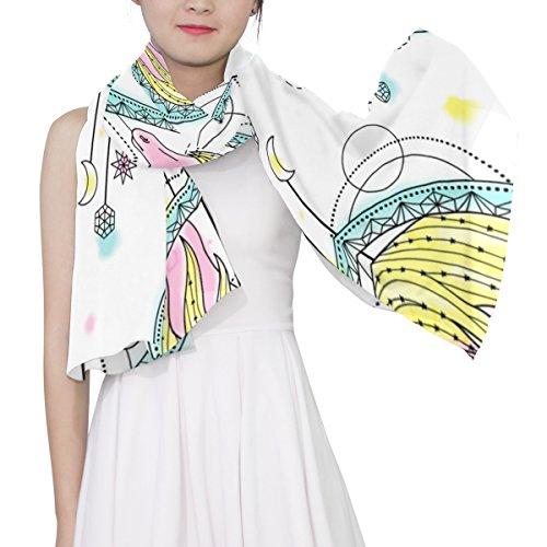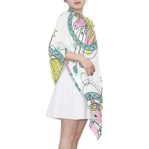 (ALAZA)/Accessories/Cold Weather Accessories/DIRECT FROM USA/Cooper girl Unicorn Star Moon Silk Scarf Shawl Wrap for Women Girls
