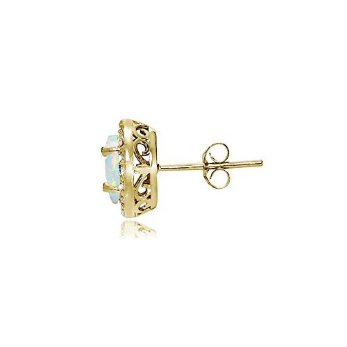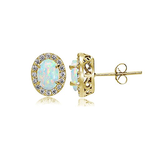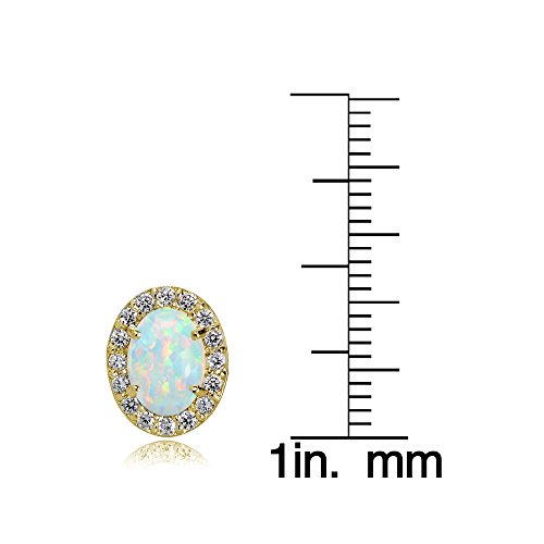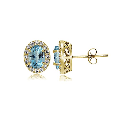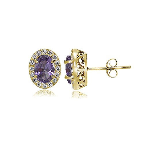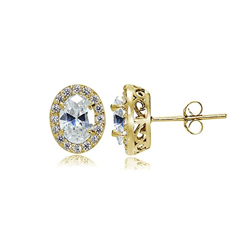 Yellow Gold Flashed Sterling Silver Genuine, Created or Simulated Gemstone and Cubic Zirconia Accents Oval Halo Stud Earrings
