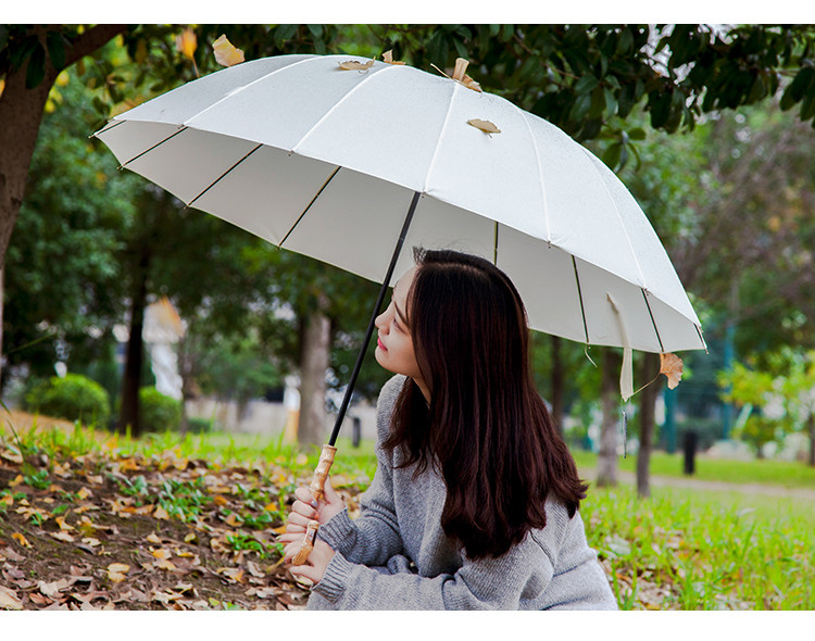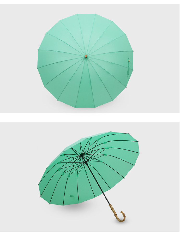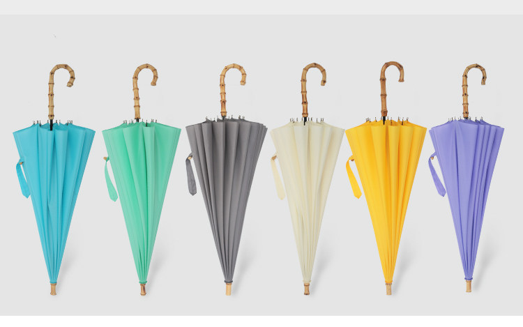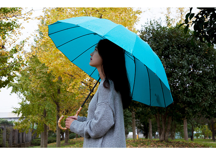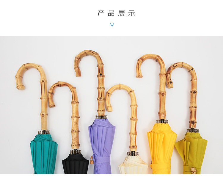 弯钩竹柄伞加大防风双人雨伞韩国纯色长柄伞创意男女伞晴雨伞两用