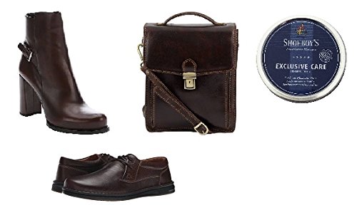 -. Feature : Shoeboy's dark brown polish for high quality and delicate leathers. Color: Dark Brown / This polish revives & refreshes the color, while gently conditioning it, leaving it with a professional shine. The light gel-like formula is free of solvents and has an agreeable aroma. / For the best results we recommend first cleaning off excess dirt from the item. Then use the Shoeboy's Multi Clean to clean off any deep set stain. Then waterproof your item using the Shoeboy's Water Protect Foam. To apply the polish, use the Shoeboy's Application brush. Finish off with a Shoeboy's Horsehair Polishing Brush for a professional looking shine. To condition your leather, use the Shoeboy's Leather Balm, and buff onto the shoe using the Shoeboy's Polish Cloth . / Beeswax thoroughly nourishes and treats the leather. Impregnates and retains the breathable quality of the leather. / Made in Germany. Sold at premium high end designer stores. Money-back satisfaction guarantee.