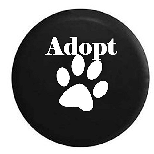Adopt - Dog Lover Paw Print Rescue Spare Tire Cover Black 29 in