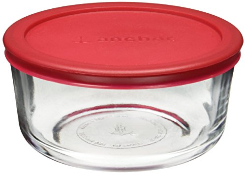 Anchor Hocking Classic Glass Food Storage Container with Lid, Red, 4 Cup