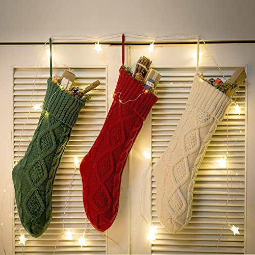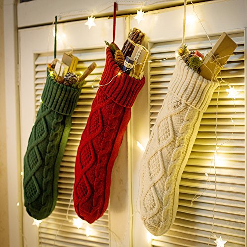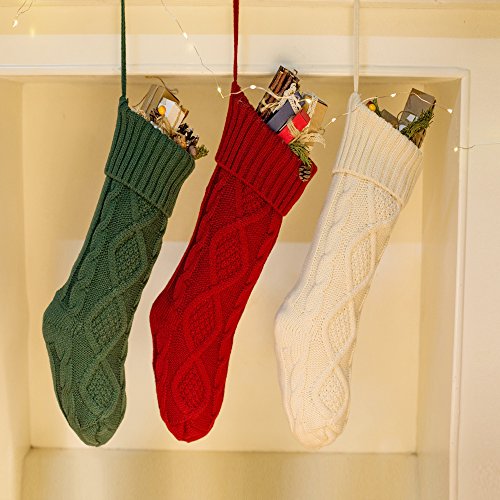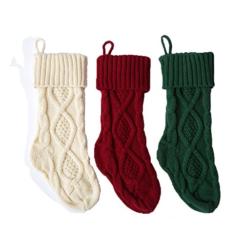 Funny Party Newest 3 pack 15” Knit Christmas Stockings,Wihte/Green/Red