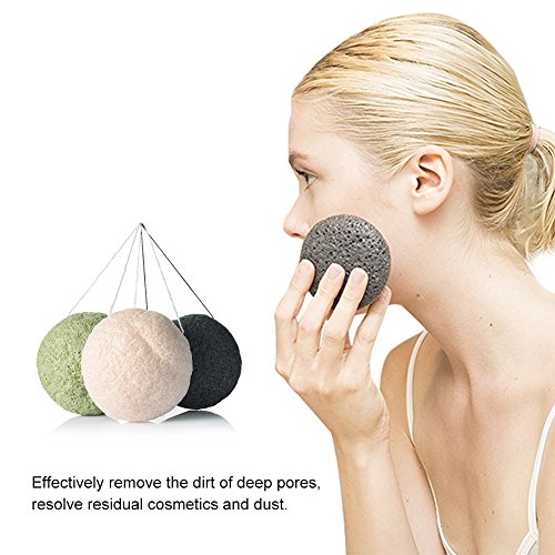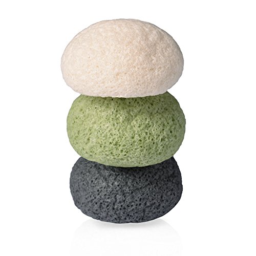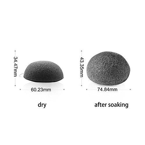 Konjac Sponge Exfoliating Facial Sponge Natural Soft Cleansing Puff for Oily and Acne Prone Skin, Biodegradable Activated Charcoal Skincare Cleanser, Set of 3