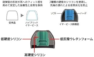 ???2種類の硬度のシリコンを組み合わせたハイブリッドイヤーピースを採用。