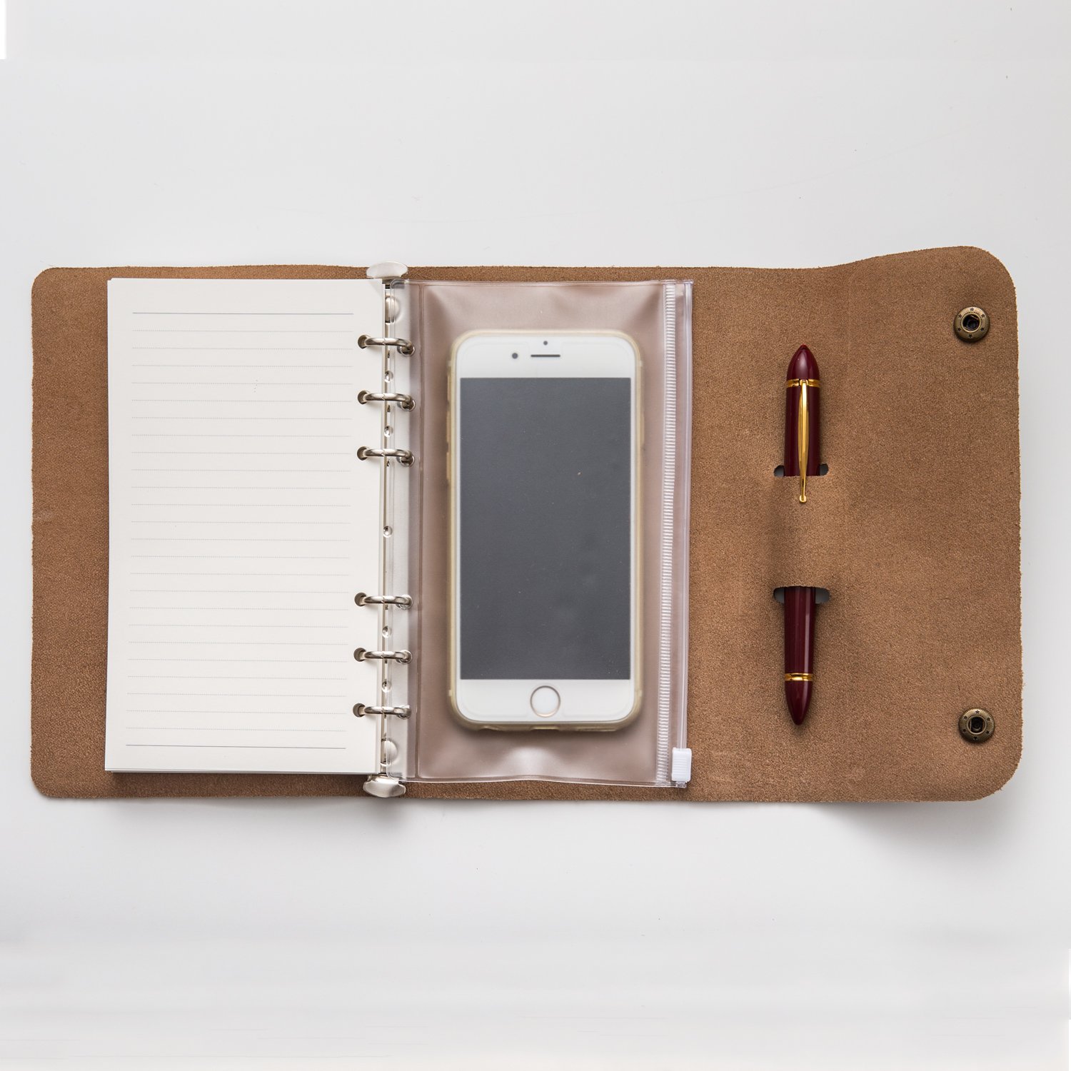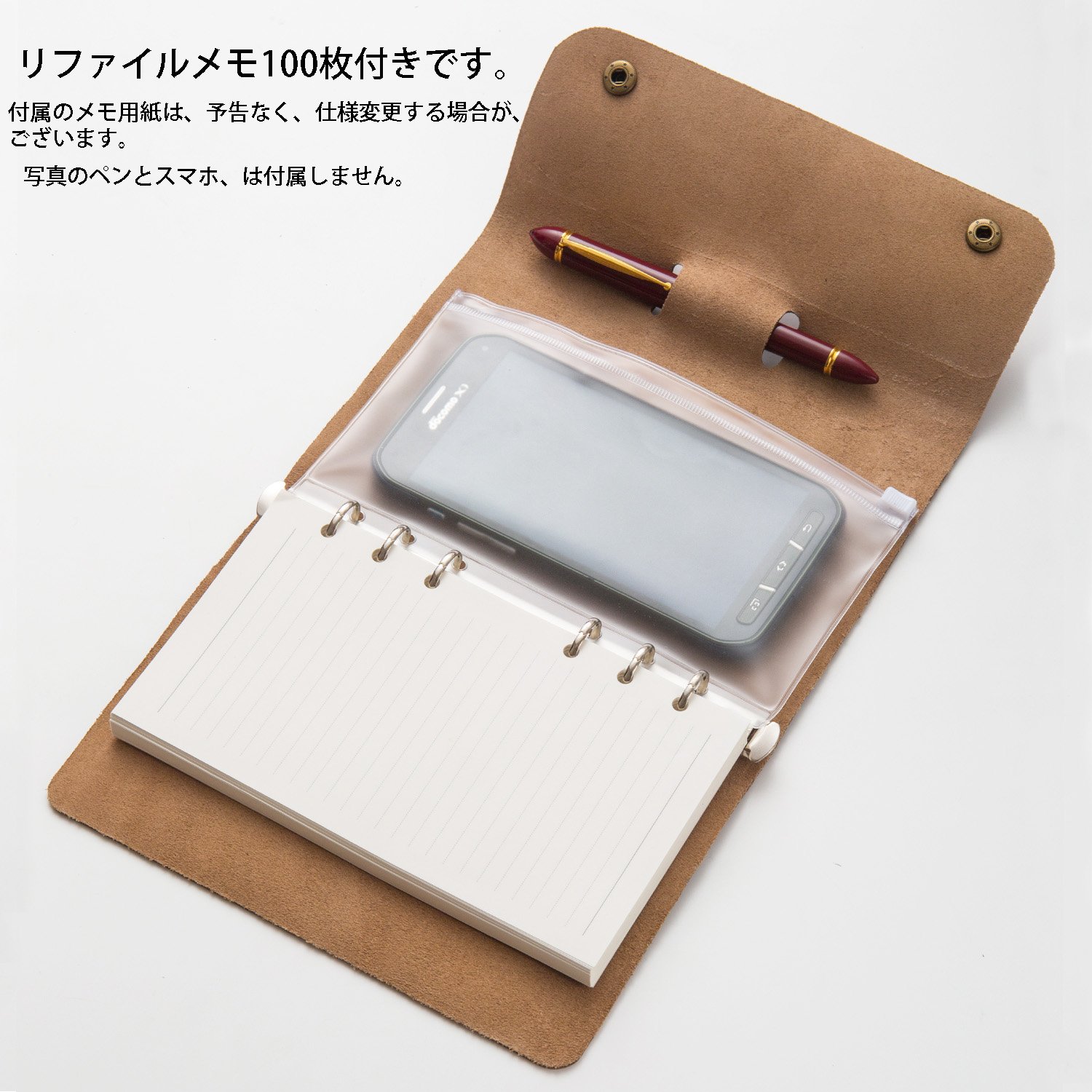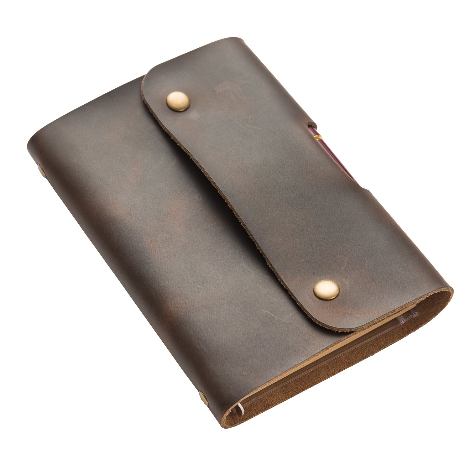It is thick, single leather tailored, relatively soft, matte finish, a little casual, very simple notebook.