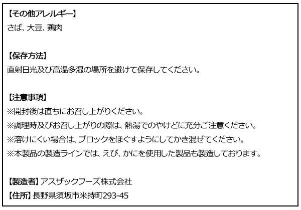 | 製造(販売)者情報 | 製造者:アスザックフーズ株式会社 住所:長野県須坂市米持町293-45 |