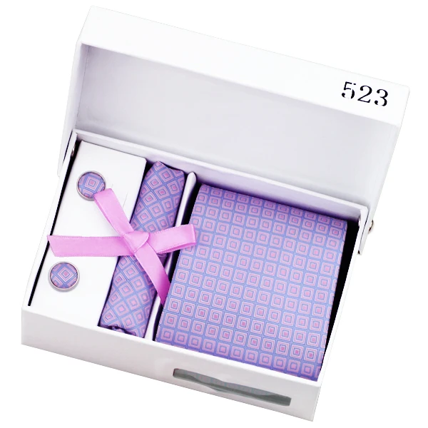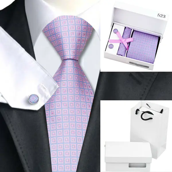 | [해외]B-523 남성 넥타이 핑크 기하학적 실크 넥타이 손수건 커프스 단추 선물 상자 가방 세트 비즈니스 웨딩 파티 넥타이 남성 패션 액세서리 |