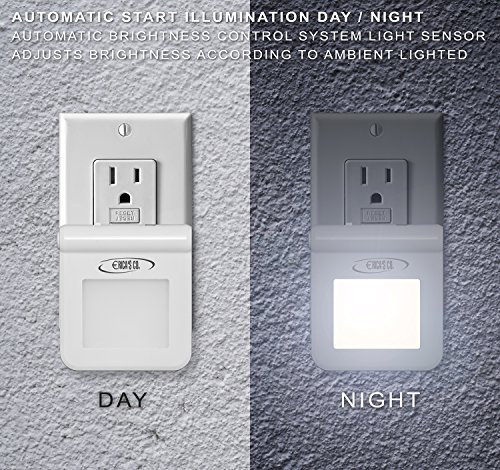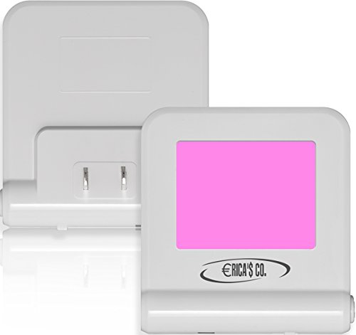 Plug-In Night Light by Ericasco Warm White LED, Dusk To Dawn Sensor, 8-color changes, Energy Efficient Nightlight for Bedroom, Bathroom, Baby Room Stairs, Kitchen, Hallway, Compact 2 Pack