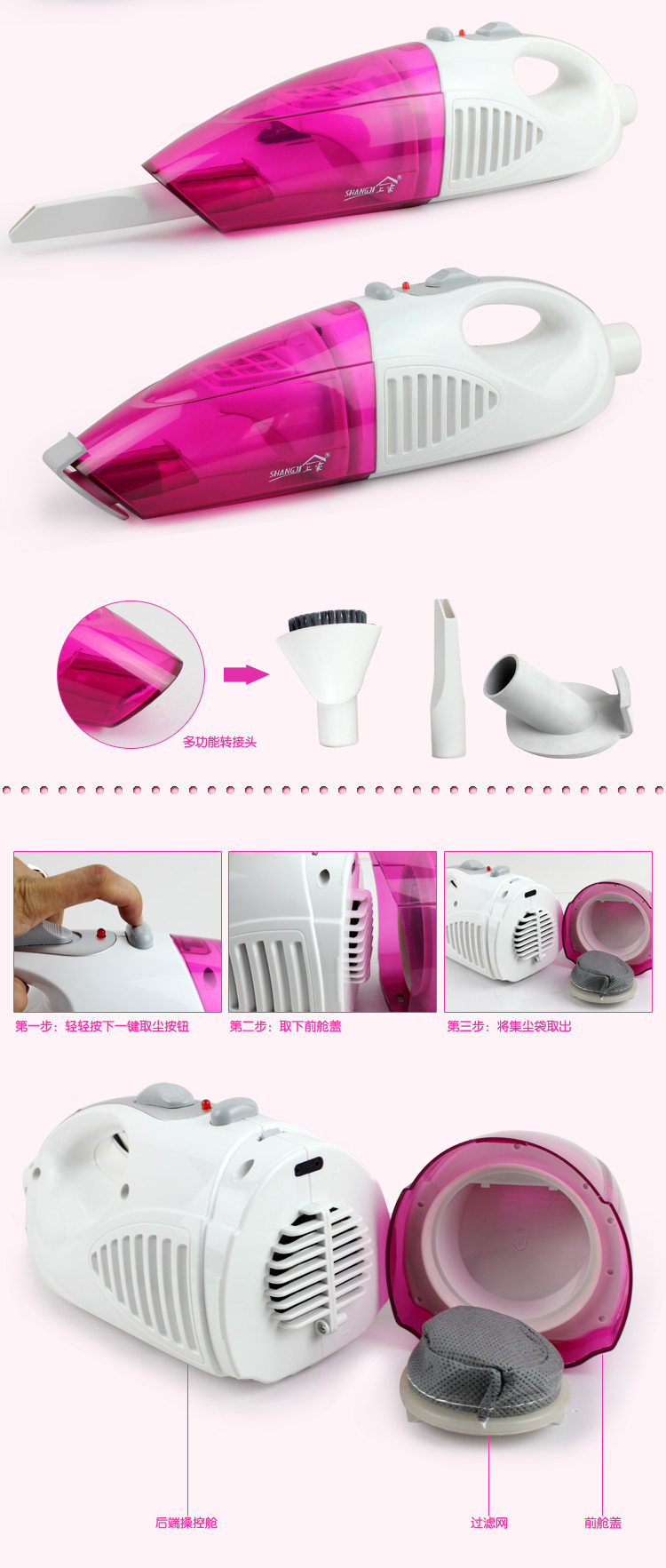 Features three: small size, large suction