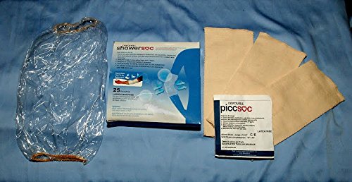 Studio : P P Custom Medical Supplies Publisher : P P Custom Medical Supplies Product Description Same Day Shipping!!! The PICC PACK - Our new Disposable PICC SOC 3/pk compression bandage ALONG WITH our #1 Seller - The Disposable Shower SOC 7/pk gives PROTECTION from water when showering!! The PICC SOC PICC LINE protector cover is a lightweight cotton compression bandage to hold your PICC lines securly to your arm while protecting it from dust and dirt. For the Mid-Arm/Bicep sizes 17" - 22" (inches) in circumference and 12" inches long. COVERS above and below the elbow. " They say they are disposable, but I was able to use them multiple times with care!! These have made my life so much better now that I can shower with my picc line with ease. They do as they say. " Andy 2015 0