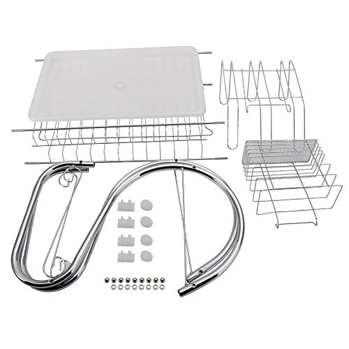 2-Tier Dish Rack and DrainBoard 20" x15 x10" Kitchen Chrome Cup Dish Drying Rack Tray Cultery Dish Drainer