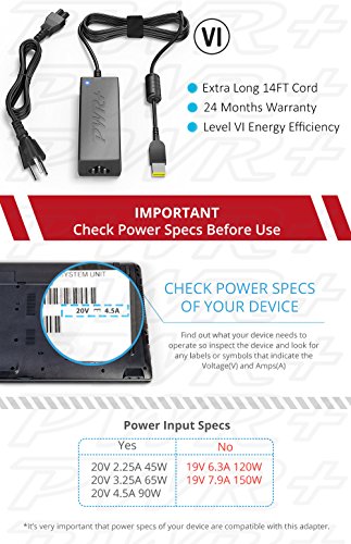 Pwr+ 90W 65W 12 Ft Long Laptop-AC-Adapter Lenovo Thinkpad Edge Carbon Yoga Flex Charger-Power-Cord E431 E440 E450 E531 E540 E550 E555 E560 G500 G500s G505 G505s G510 G510S G410 L440 L450 L540 T431s T440 T440s T450 T450s T540 T550 X240 X250 S431; IdeaPad S