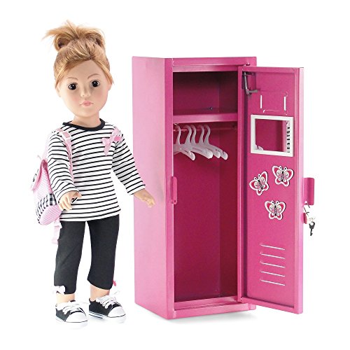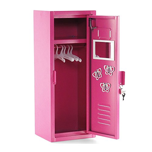 - Amazingly realistic and sturdy 18" doll bright pink metal school locker, a functional and fun way to store clothes and accessories, takes the place of a closet or armoire!
