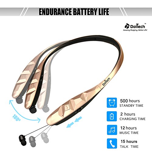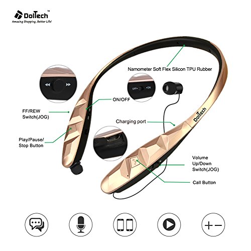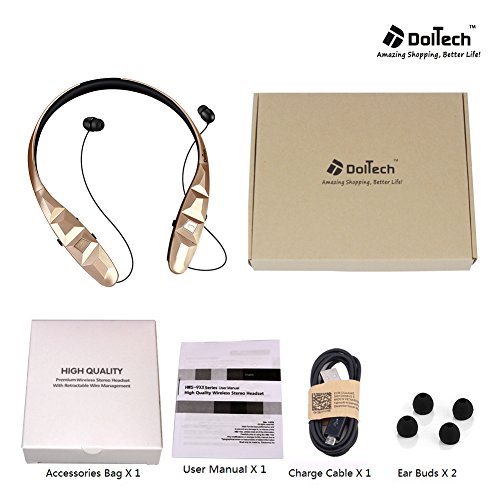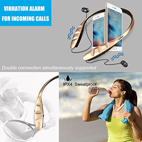 Title : Bluetooth Headphones, Doltech Stereo Wireless Headset Neckband Retractable Sport Earbuds with Mic Noise-Cancelling, Sweatproof Bluetooth 4.1 for iPhone IOS Android (gold)