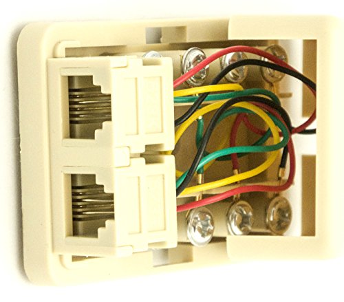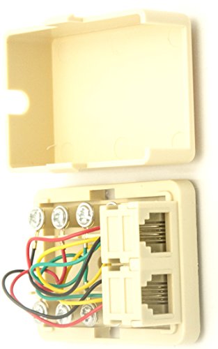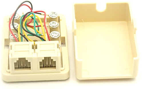 Surface Mount Phone Jack - Modular Dual Jack - Quality Sound - WORKS great with Phone Jack Extension Line Cord 15' and 25' Modular Single Jack - Phone Jack Plug - a/ka Jack Coupler - Phone Jack Adapter - Phone Accessories - Long Lasting Durable With secur