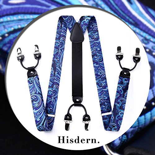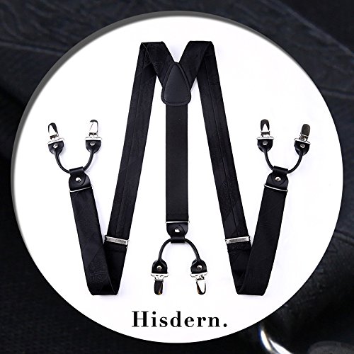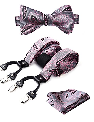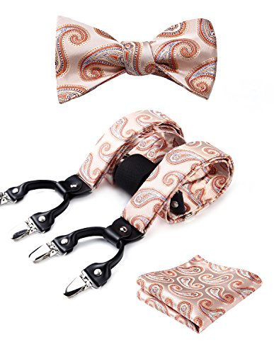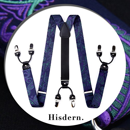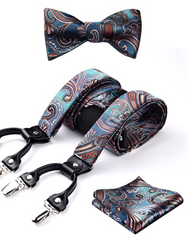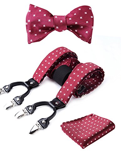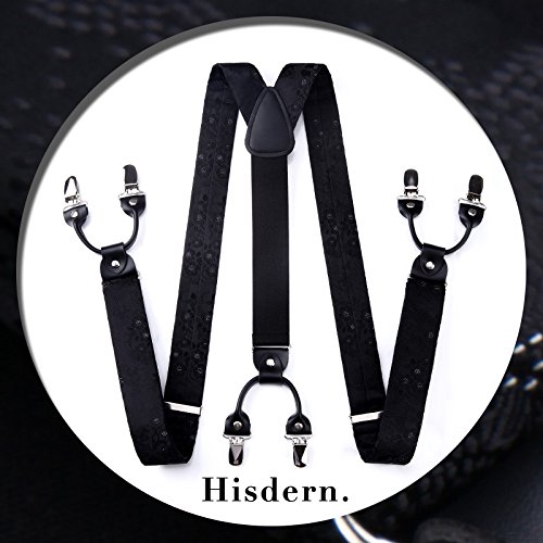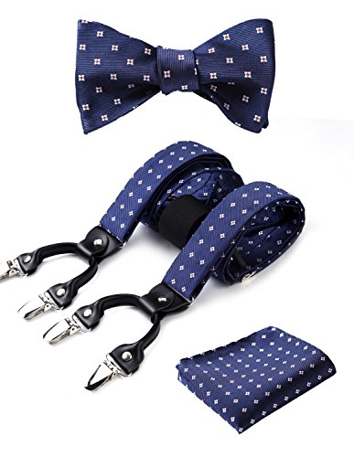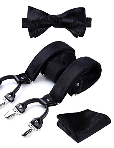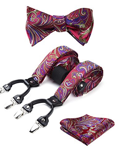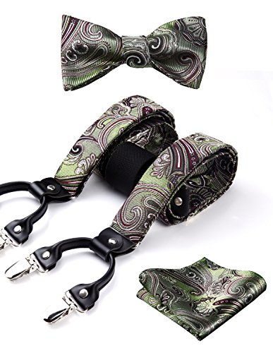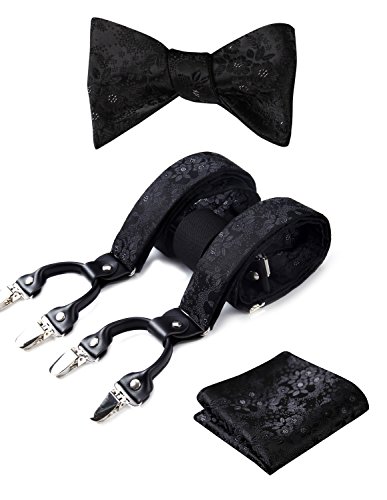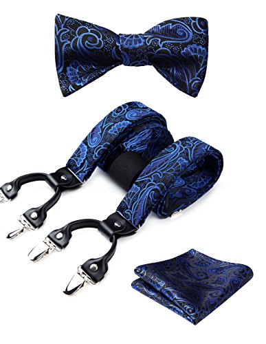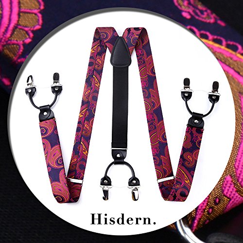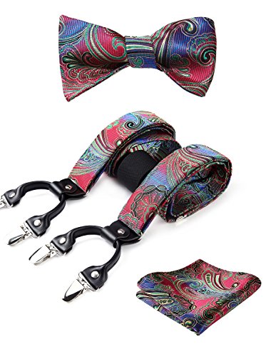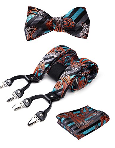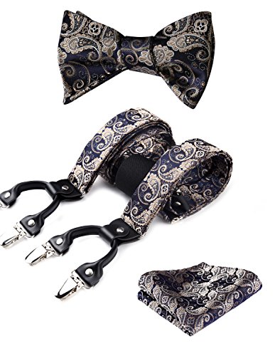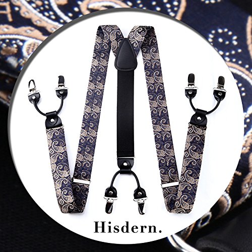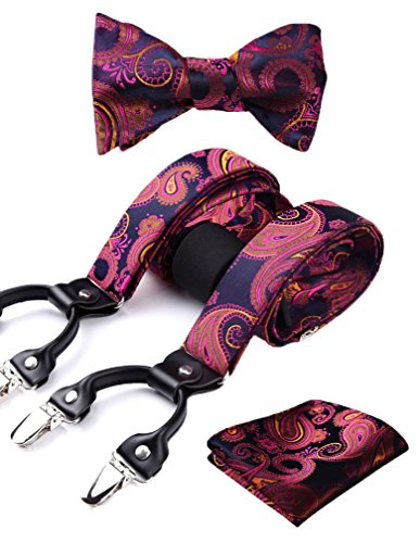 | (HISDERN)/Accessories/Suspenders Cummerbunds/DIRECT FROM USA/HISDERN Various Classic 6 Clips Suspenders Bow Tie and Pocket Square Set Y Shape Adjustable Braces |