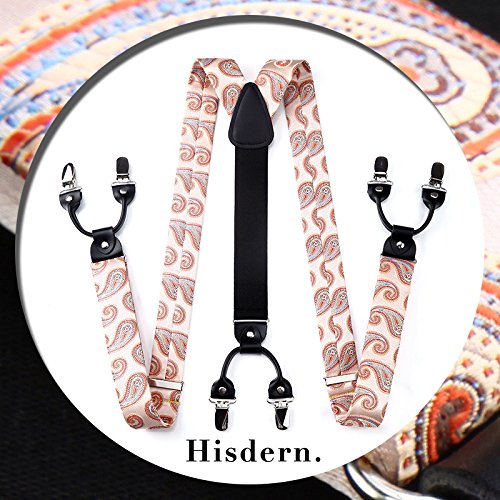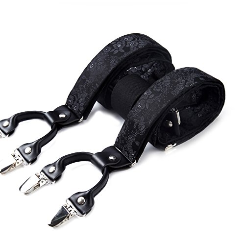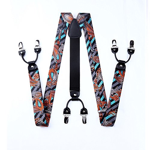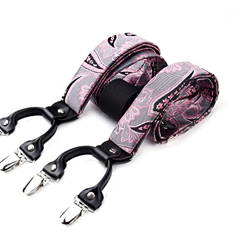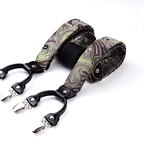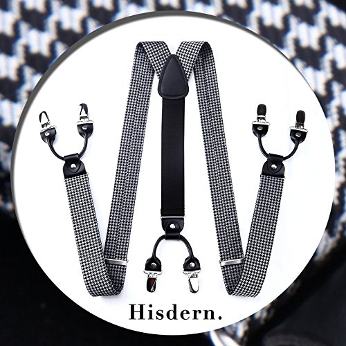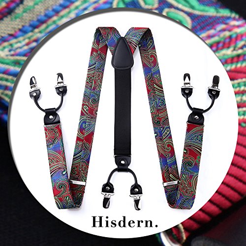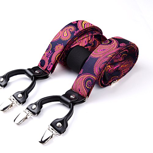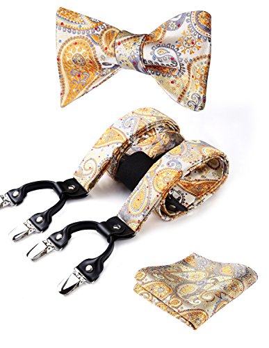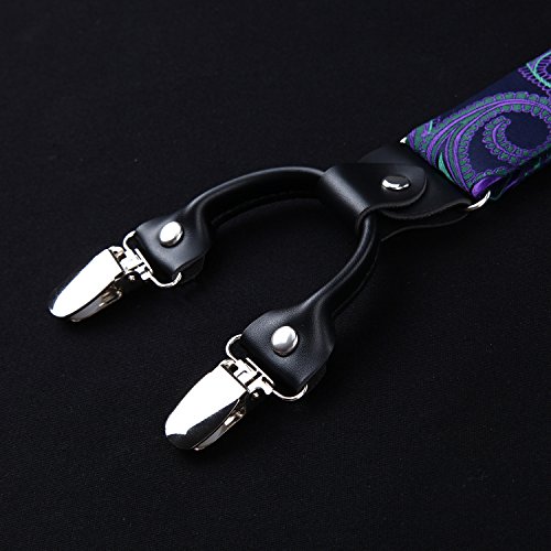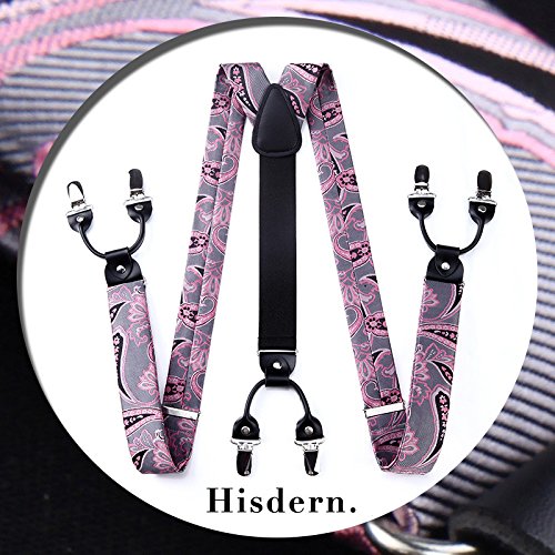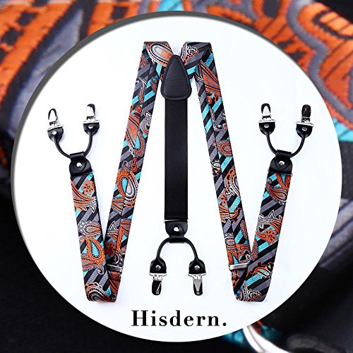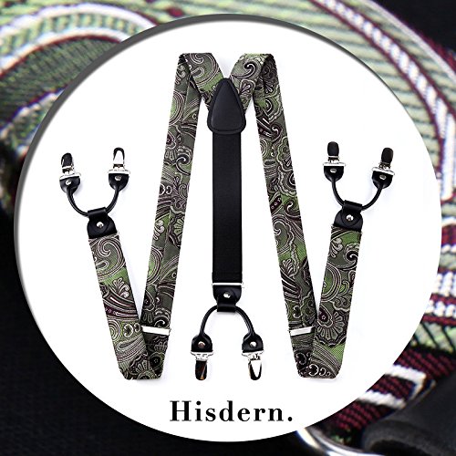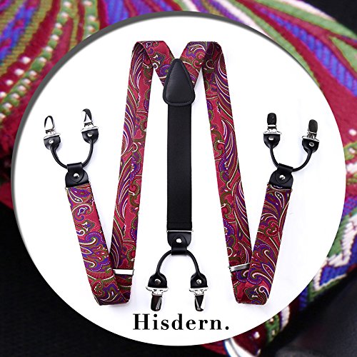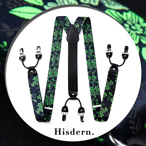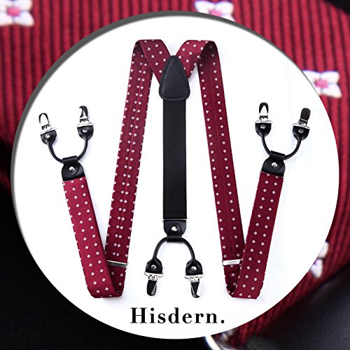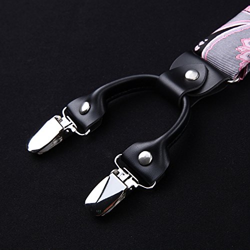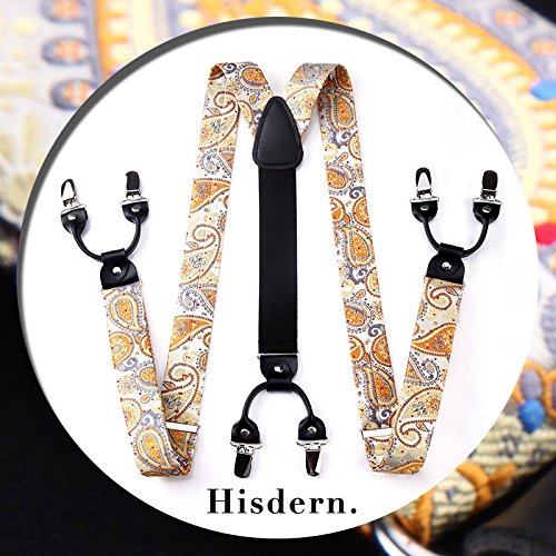 | (HISDERN)/Accessories/Suspenders Cummerbunds/DIRECT FROM USA/HISDERN Various Classic 6 Clips Suspenders Bow Tie and Pocket Square Set Y Shape Adjustable Braces |
