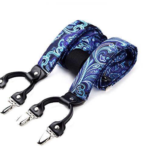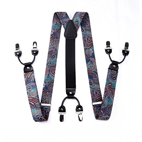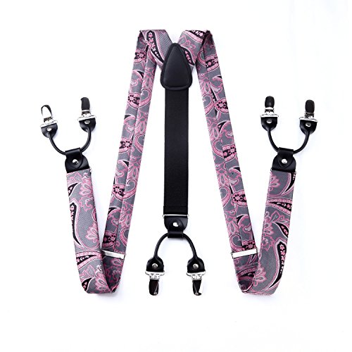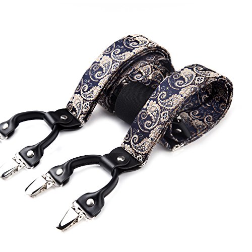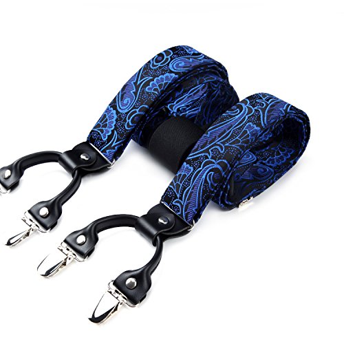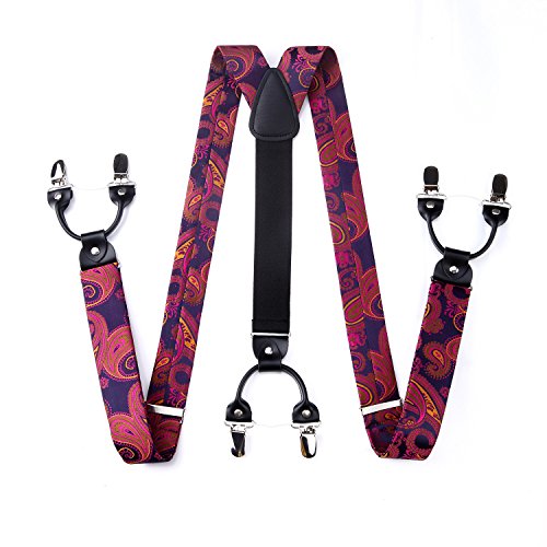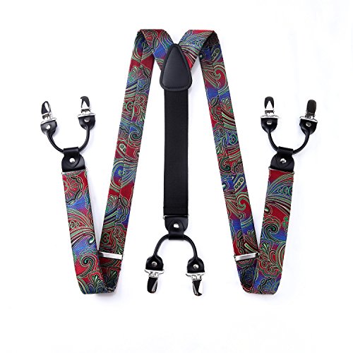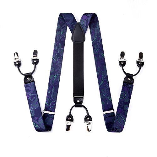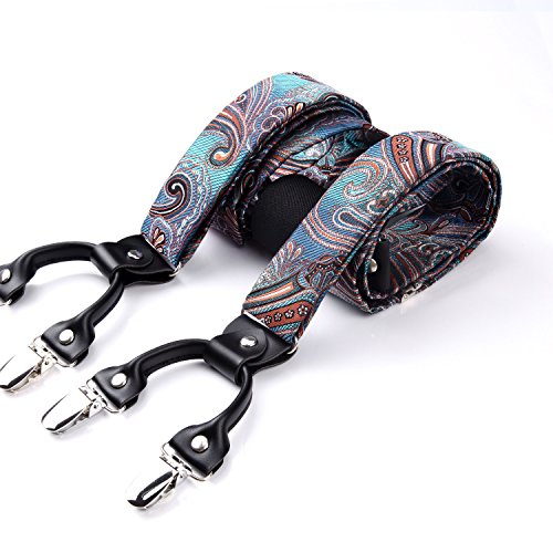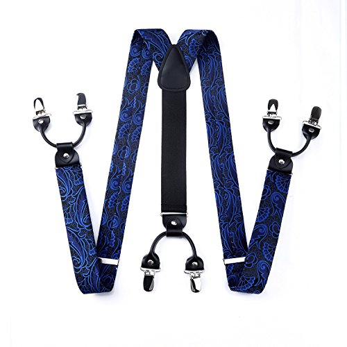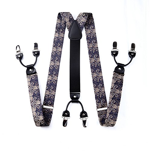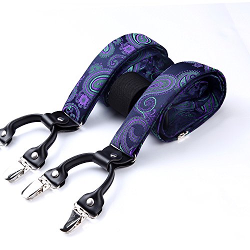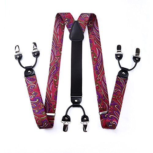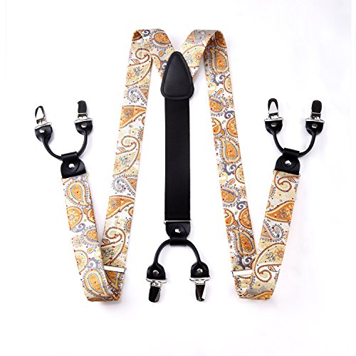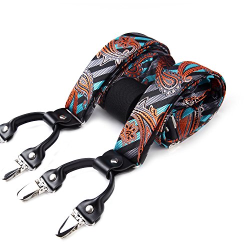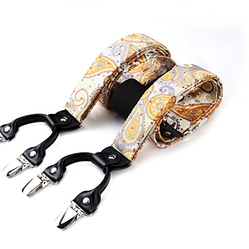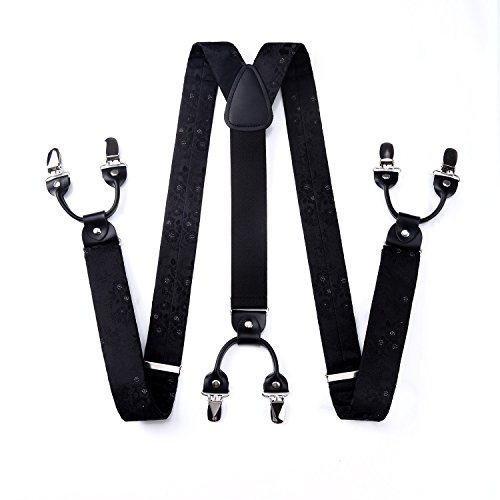 | (HISDERN)/Accessories/Suspenders Cummerbunds/DIRECT FROM USA/HISDERN Various Classic 6 Clips Suspenders Bow Tie and Pocket Square Set Y Shape Adjustable Braces |