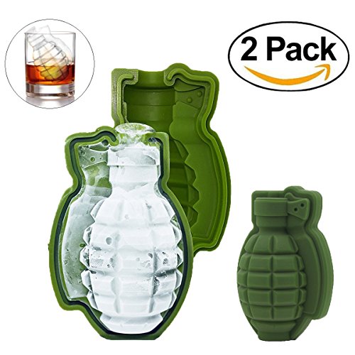 2-Pack 3D Grenade Ice Cube Mold, Annks Silicone Ice Mold Bar Party Silicone Trays Mold Gift Tool