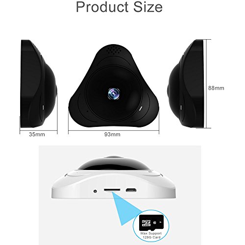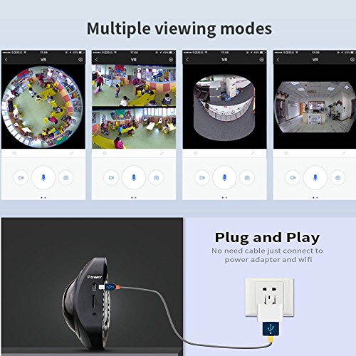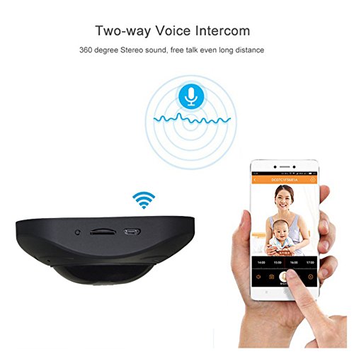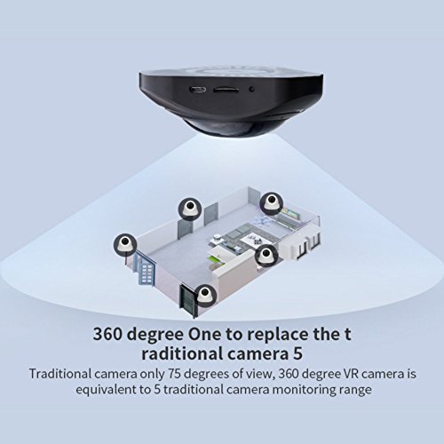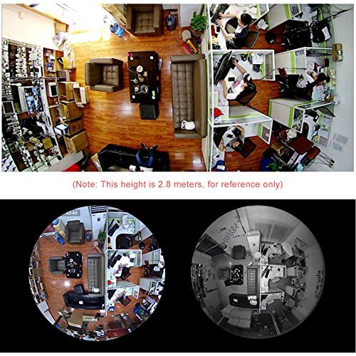 【Fish Eye Panoramic Review】: 360 degree fisheye Wi-Fi IP camera without blind spots. The camera keeps an eye on every corner in your home/store/office, never miss anything happened in the monitoring area. one is enough for your home security.