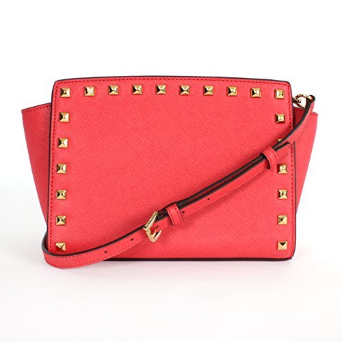 Sized right for all your daily essentials, this sophisticated messenger bag is made of scratch resistant Saffiano leather and finished with a front panel of chic pyramid studs. By MICHAEL Michael Kors.Feature