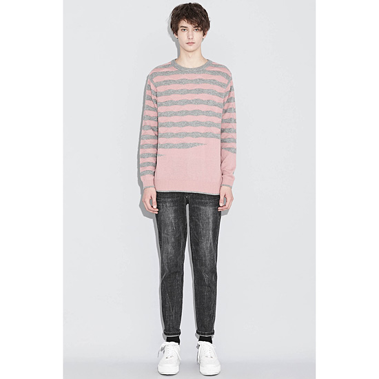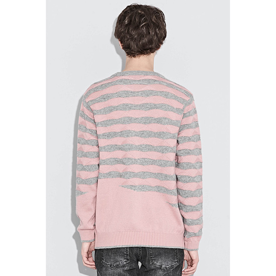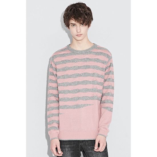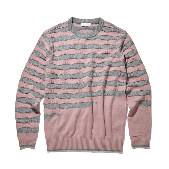 - 유니크한 텍스쳐의 스트라이프 패턴을 적용한 남성 니트.