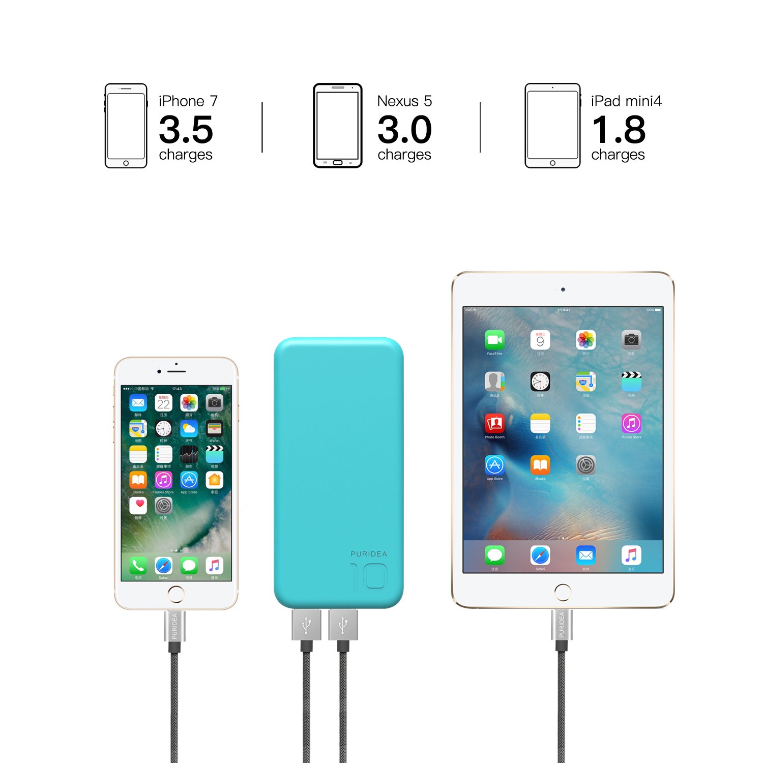 PURIDEA mobile battery equipped with world-class lithium polymer is amazingly lightweight, portable and convenient!